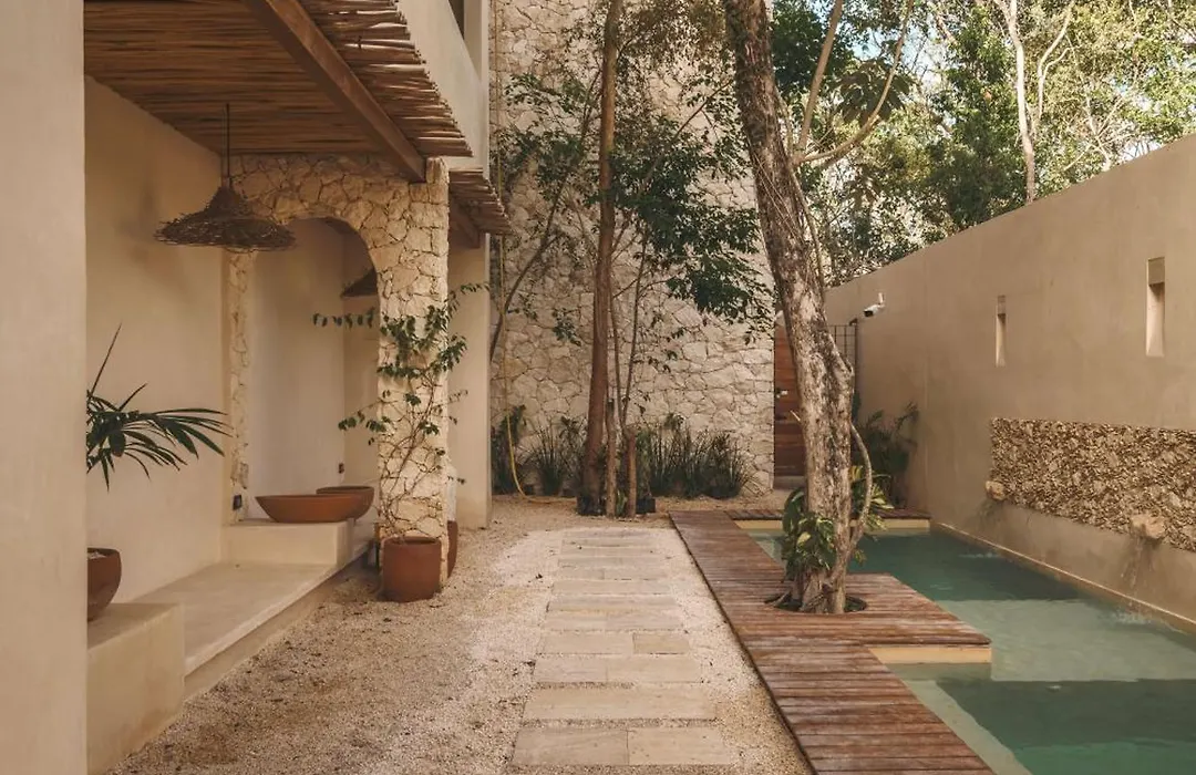 The spacious 95 m² Boho Chic Condo With Private Pool In La Veleta Tulum offers proximity to a number of tourist attractions, such as the Tulum Underwater, located approximately a 25-minute walk away. The 2-bedroom apartment features a terrace that overlooks the street.